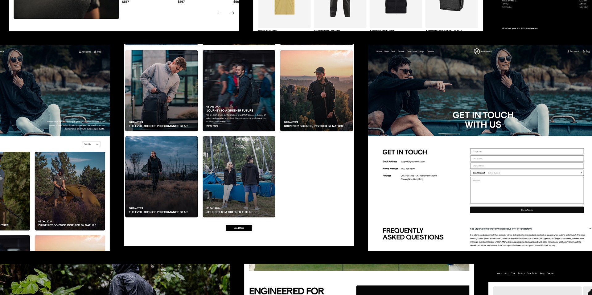 For Graphene-X, every design element was grounded in research. From color palettes that communicate precision and performance, to typography that balances technical credibility with readability, data played a key role in shaping a user-centered experience. This insight-driven approach ensured the website wasn't just visually compelling — it was intuitive, functional, and aligned with the expectations of a science-forward apparel audience.